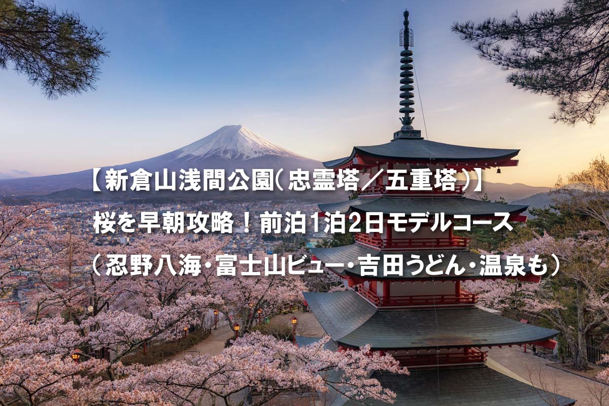 - 【新倉山浅間公園(忠霊塔/五重塔)】桜を早朝攻略!前泊1泊2日モデルコース(忍野八海・富士山ビュー・吉田うどん・温泉も) ※準備中