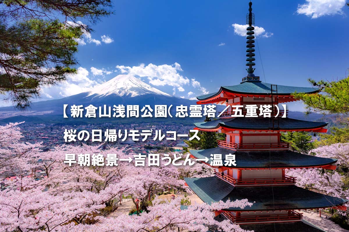 - 【新倉山浅間公園(忠霊塔/五重塔)】桜の日帰りモデルコース|早朝絶景→吉田うどん→温泉